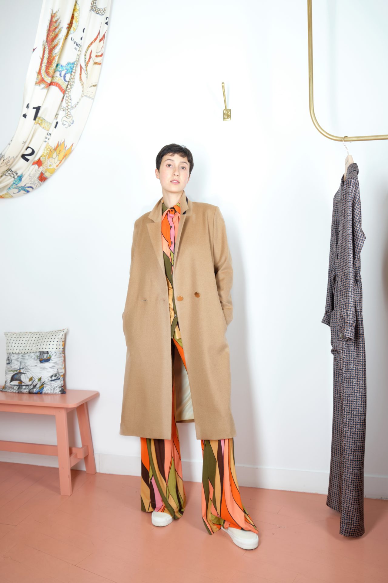 100% baby camelhair, details and lining in 100% silk twill.