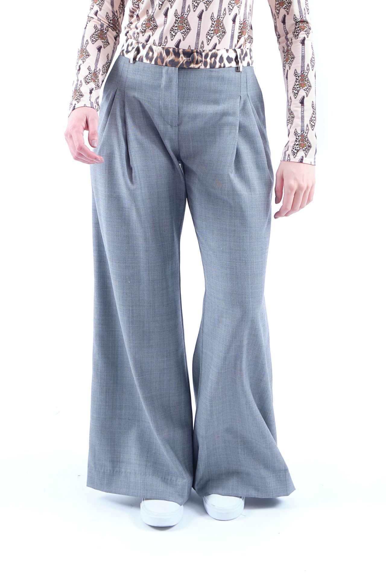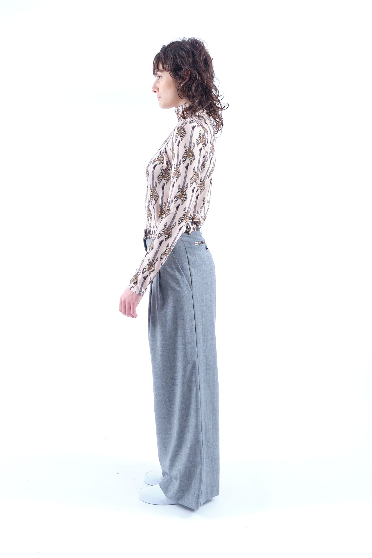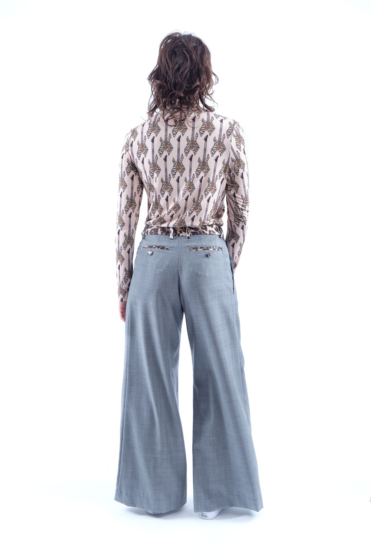 Long and wide pants with italian pockets and two darts at the front, belt covered of silk twill. Exclusive print “Panther”.