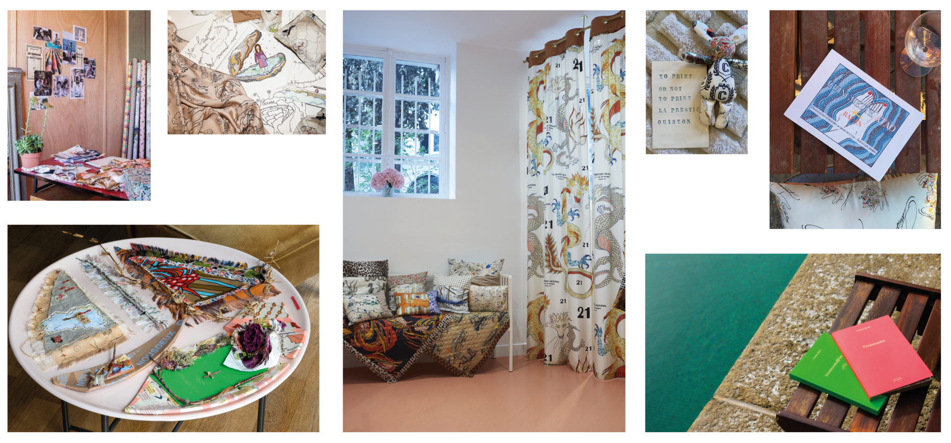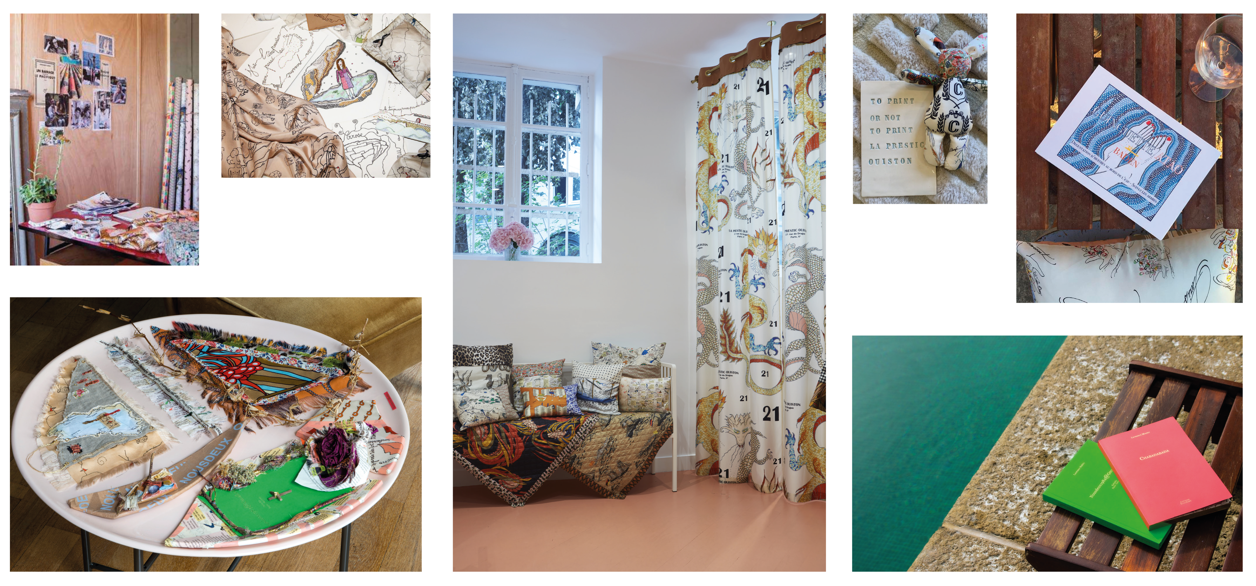 She collaborates with passionate and fascinating women, such as the illustrator Laurence Kiberlain, her lifetime partner in crime, but also Audrey Demarre, an embroidery artist, Stéphanie Bonvicini, sculptor and ceramisist, and many more.